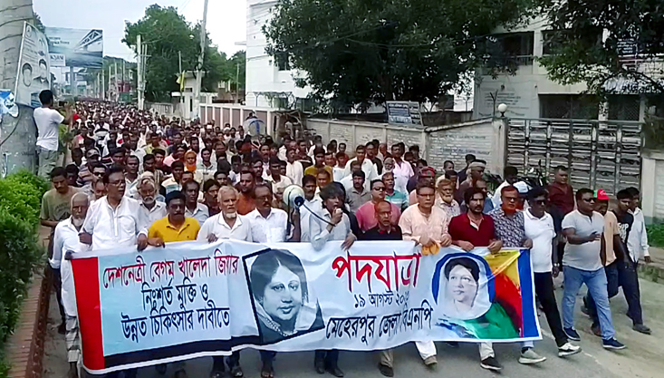 বিএনপির চেয়ারপারসন ও সাবেক প্রধানমন্ত্রী খালেদা জিয়ার নিঃশর্ত মুক্তি ও উন্নত চিকিৎসার দাবিতে মেহেরপুরে জেলা বিএনপির পদযাত্রা অনুষ্ঠিত হয়েছে।