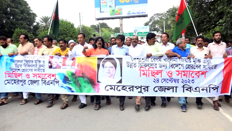 খালেদা জিয়ার মুক্তির দাবিতে মেহেরপুরে বিএনপির বিক্ষোভ