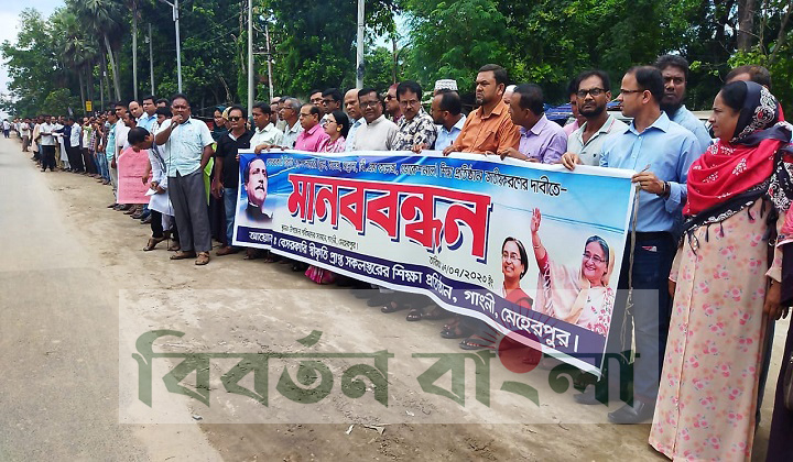 জাতীয়করণের দাবিতে মেহেরপুরে শিক্ষকদের মানববন্ধন