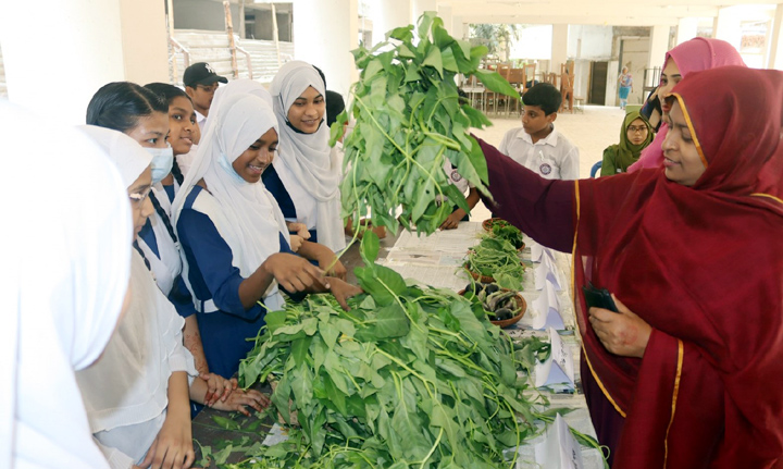 জলবায়ু বিপর্যয়রোধ ও নিরাপদ খাদ্য উৎপাদনে স্বল্প পরিসরে সবুজায়নে সবজি প্রদর্শনী শীর্ষক আলোচনায় বক্তারা বলেন, অপরিকল্পিত নগর বিস্তার ও অবকাঠামো উন্নয়নের কারণে শহরে সবুজের পরিমাণ ক্রমেই হ্রাস পাওয়ায় প্রতি বছরই নগরের তাপমাত্রা বৃদ্ধি পাচ্ছে। এই প্রেক্ষাপটে স্বল্প পরিসরে সবুজায়ন একটি কার্যকর ও সময়োপযোগী সমাধান। এই ধারণাকে সামনে রেখে রাজধানীর বেঙ্গলী মিডিয়াম হাই স্কুলের মাঠের একটি কর্ণারে খেলাধুলার জন্য প্রয়োজনীয় জায়গা অক্ষুন্ন রেখে শিক্ষার্থীরা সবজি বাগান তৈরি করেছে। আমাদের প্রত্যাশা এই উদ্যোগ শিক্ষার্থীদের মধ্যে নিরাপদ খাদ্য উৎপাদন, পরিবেশ সংরক্ষণ এবং জলবায়ু পরিবর্তনের প্রভাব মোকাবিলায় সচেতনতা বৃদ্ধি করবে এবং তাদের নেতৃত্ব বিকাশে সহায়ক ভূমিকা রাখবে।