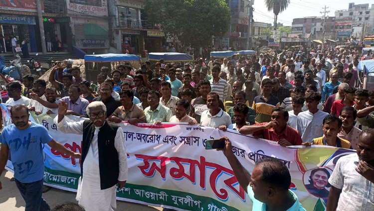 মকবুল হোসেনের নেতৃত্বে অবরোধের প্রতিবাদে গাংনীতে বিক্ষোভ সমাবেশ