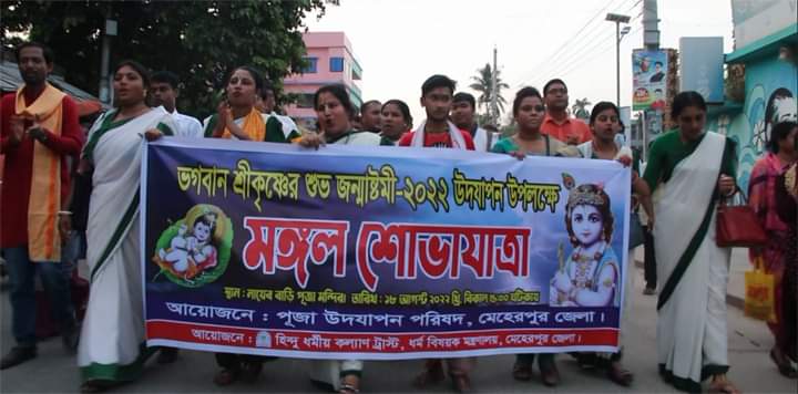 শ্রীকৃষ্ণের জন্মতিথি শুভ জন্মাষ্টমী উপলক্ষে মেহেরপুরে আলোচনা সভা ও শোভাযাত্রা অনুষ্ঠিত হয়েছে।