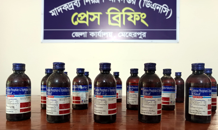 মেহেরপুরে ১৭ বোতল এসকাফ সিরাপ উদ্ধার