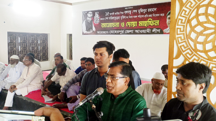 ১৫ আগস্ট জাতীয় শোক দিবস পালনের লক্ষে মেহেরপুর জেলা আওয়ামী লীগের আয়োজনে বঙ্গবন্ধু শেখ মুজিবুর রহমান ও বঙ্গমাতা শেখ ফজিলাতন্নেছা মুজিবসহ সকল শহীদের প্রতি শ্রদ্ধা নিবেদন করে আলোচনাসভা ও দোয়া মাহফিল অনুষ্ঠিত হয়েছে। বৃস্পতিবার দুপুরে গাংনী উপজেলা অডিটোরিয়ামে এ অনুষ্ঠানের আয়োজন করা হয়।