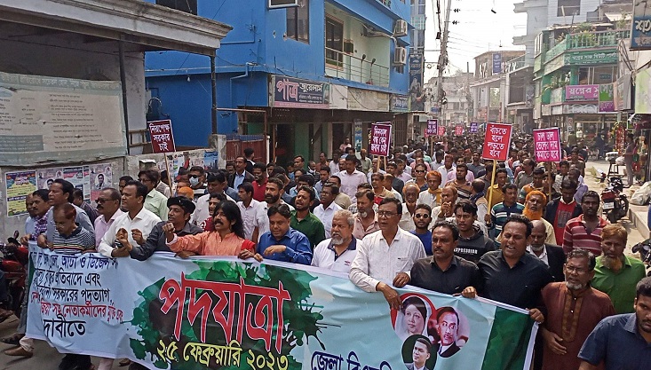শনিবার (২৫ ফ্রেব্রুয়ারি) সকালে মেহেরপুর জেলা বিএনপির উদ্যোগে পদযাত্রাটি শহরের নতুন বাসষ্ট্যান্ড থেকে শুরু করে প্রধান প্রধান সড়ক প্রদক্ষিণ করে জেলা বিএনপি’র কার্যালয় প্রাঙ্গণে গিয়ে শেষ হয়।